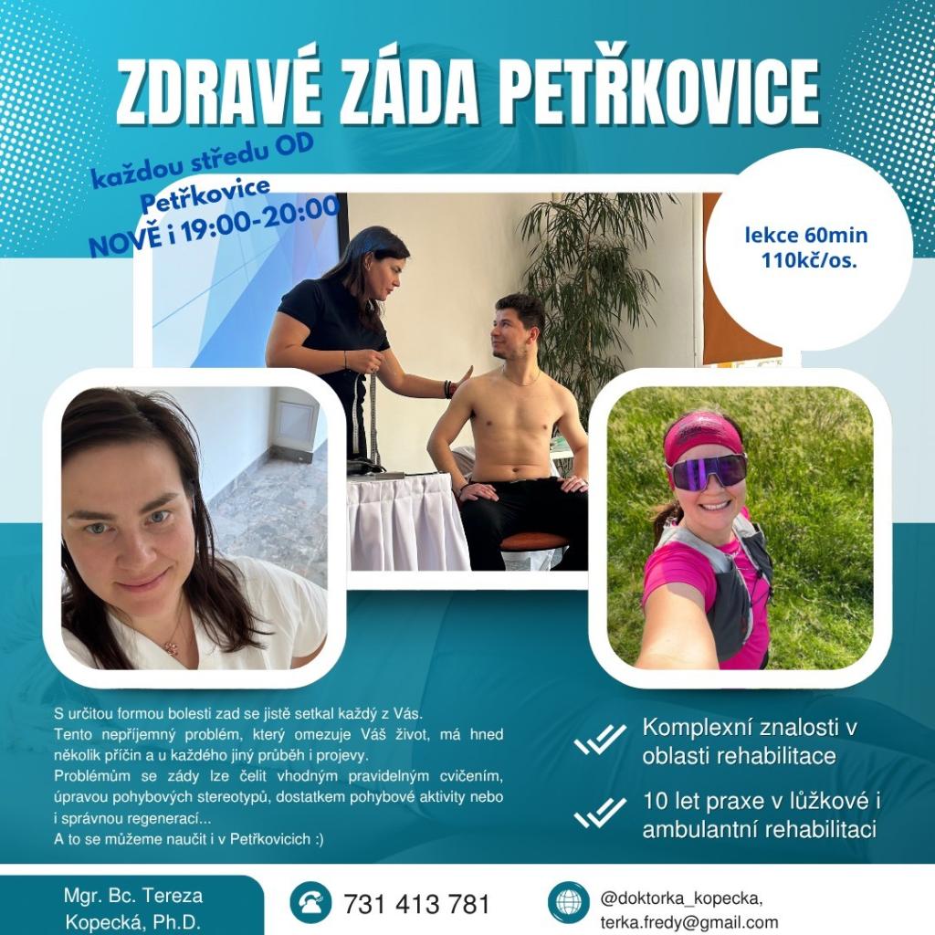 V pondělí 22. prosince v 16 hodin pak děti vystoupí s pásmem O svátcích vánočních na náměstí v Novém Jičíně. - Ergoterapeutka Tereza Kopecká nabízí zájemcům lekce cvičení Zdravá záda, které probíhají každou středu v KD v Petřkovicích. Nově nabízí termín také od 19 do 20 hodin a také cvičení orientované více na muže.