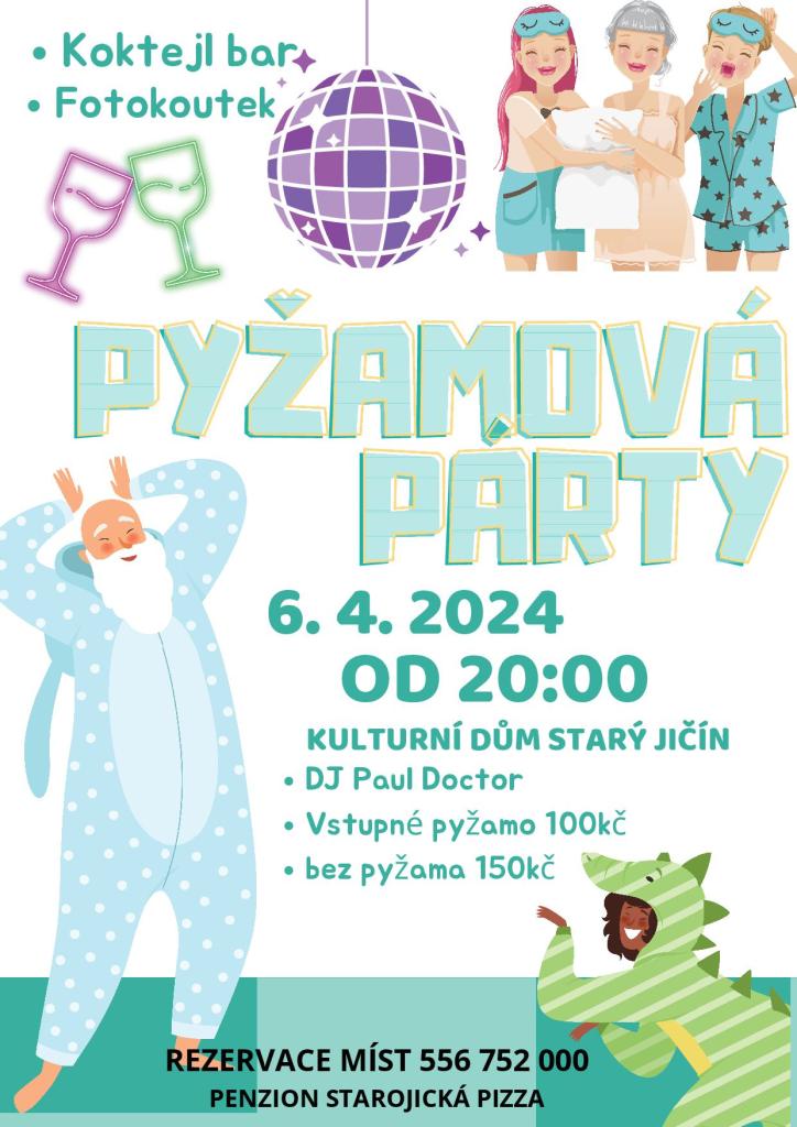 6. Penzion Starojická pizza Vás zve na Pyžamovou party, která se bude konat v sobotu 6. dubna od 20 hodin v sále kulturního domu ve Starém Jičíně. Těšit se můžete na DJ, fotokoutek a koktejlový bar. Místo si můžete rezervovat přímo v restauraci nebo na čísle 556 752 000.