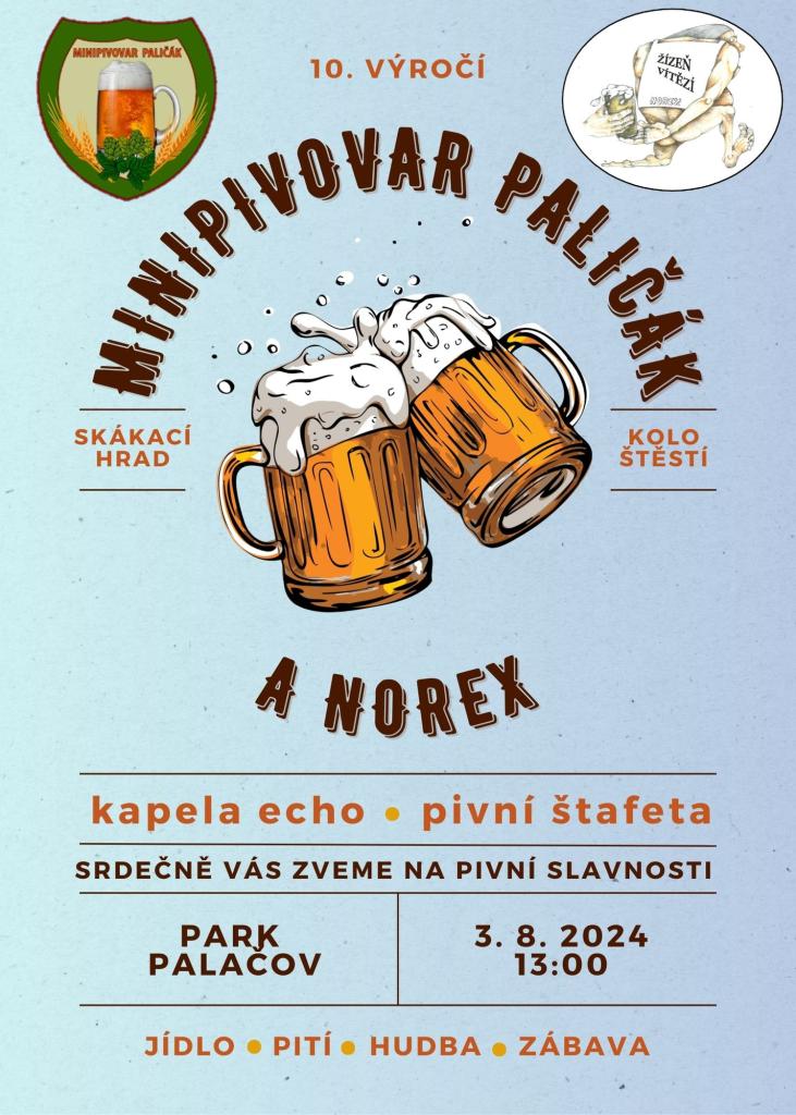 - V Palačově se po letech odmlky opět uskuteční pivní štafeta, kterou pořádá spolek NOREX ve spolupráci s Minipivaovarem Paličák, který tímto oslaví 10. výročí svého vzniku. Pivní slavnosti začínají ve 13 hodin