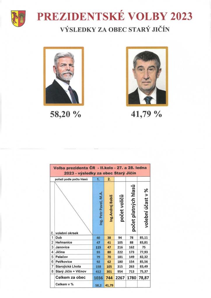 výsledky za obec Starý Jičín
