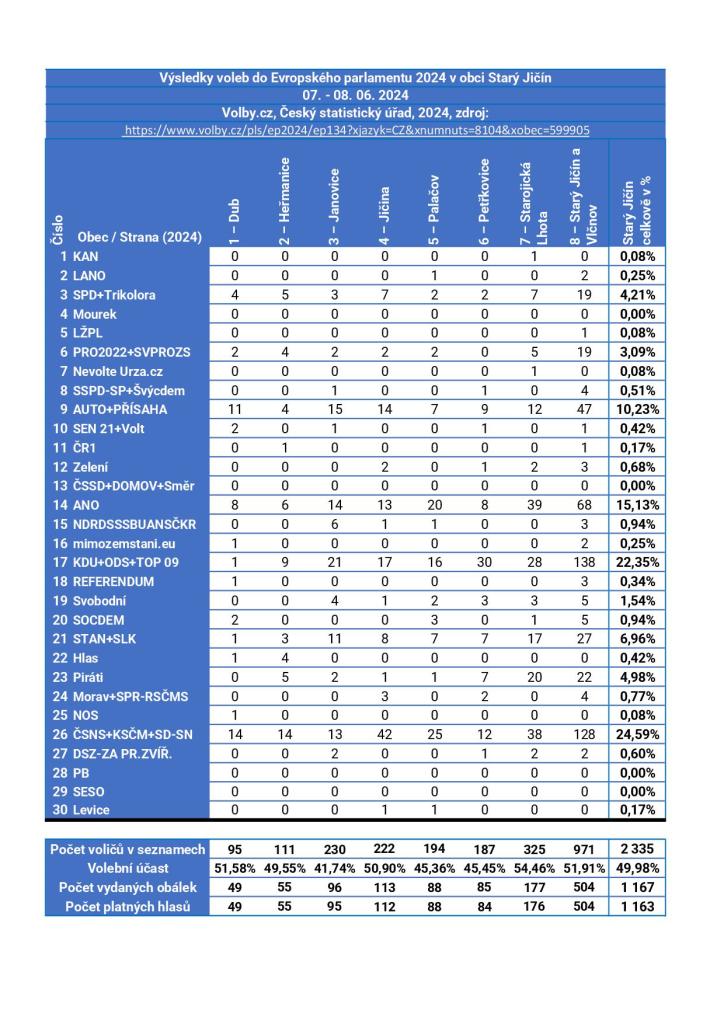 Výsledky voleb do Evropského parlamentu 2024 v obci Starý Jičín