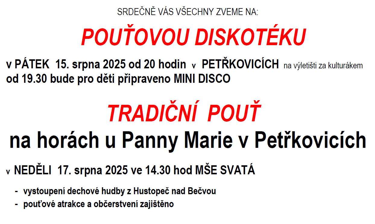 Tradiční pouť a pouťová diskotéka v Petřkovicích